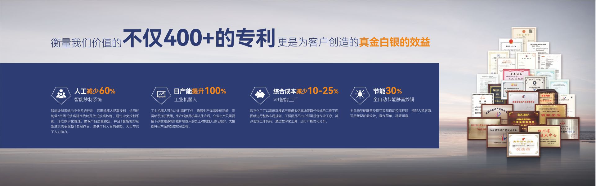 成都??茩C械設(shè)備制造有限公司(簡稱:成都??疲┦且患壹邪l(fā)、生產(chǎn)、銷售、服務(wù)為一體,專注為中國傳統(tǒng)食品行業(yè)提供自動化、智能化、數(shù)字化、智慧工廠整體解決方案的國家級高新技術(shù)企業(yè)。公司擁有標(biāo)準(zhǔn)化辦公樓及現(xiàn)代化生產(chǎn)車間約42000m2,具有較強的綜合研制、設(shè)計開發(fā)、生產(chǎn)能力,具備嚴(yán)格的質(zhì)量管理體系和完善的售后服務(wù)體系。公司業(yè)務(wù)范圍覆蓋:復(fù)合調(diào)味品智能生產(chǎn)線、中式醬鹵肉制品智能生產(chǎn)線、醬腌菜智能生產(chǎn)線、智慧餐廚、央廚預(yù)制菜調(diào)理智能生產(chǎn)線,與海底撈、天味、九毛九、聚慧、楊國福、絕味、雙匯、新希望、無窮、烏江、吉香居、仲景、李記樂寶、Tyson、益海嘉里、開小灶、老鄉(xiāng)雞等眾多知名企業(yè)合作。截止目前,成都??埔呀?jīng)助力超2000+企業(yè)順利投產(chǎn)5000余條生產(chǎn)線,為客戶創(chuàng)造年產(chǎn)值超1000億元!